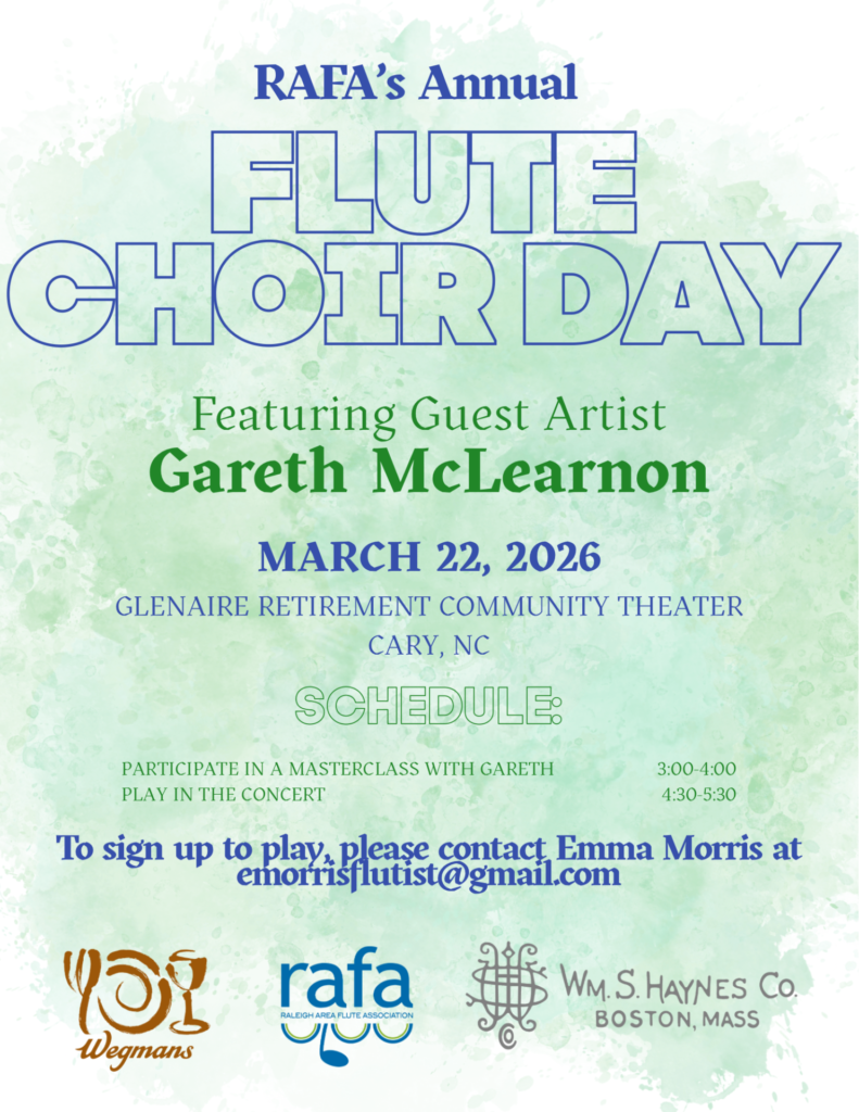 These events are presented through Mallarmé Music, Yamaha, the Raleigh Area Flute Association, and the Duke Music Department.